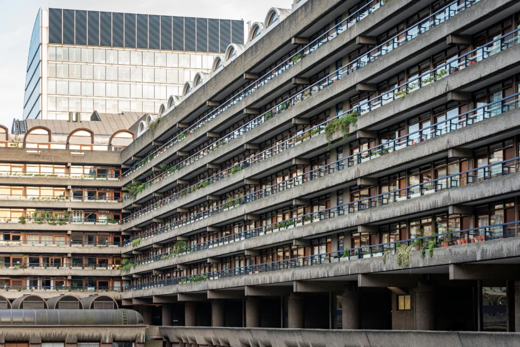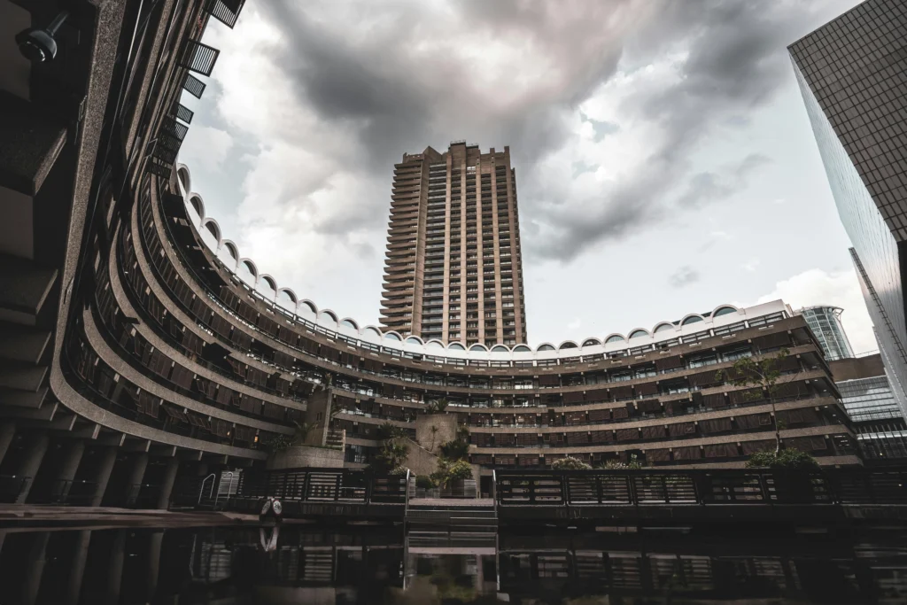 Barbican Centre with textured concrete and bold brutalist geometry.